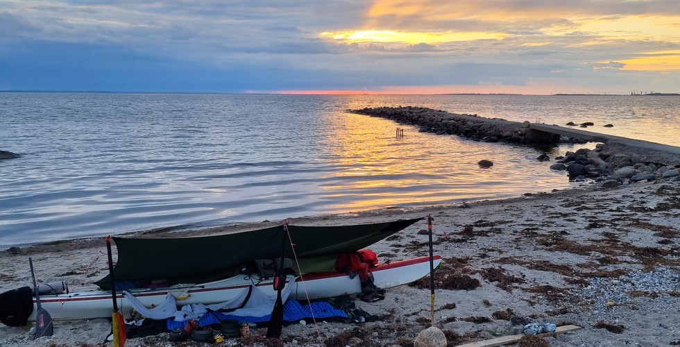 Nice and calm day in the sun so I make time for lunch and ice cream before I end the day just as the sun goes down at Korksvik after 67km.