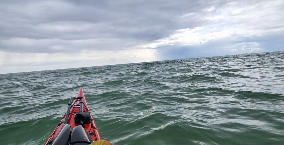 As we keep going i can feel a tap now and then and it seems like they are playing a game, tapp the bot just like in finding Nemo and after tapping they head into shore so the group that follow me just gets smaller and smaller until they all are gone after 90 minutes and then it was just Ymir and me again.