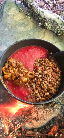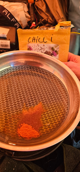 I really enjoy cooking from scratch, even on trips like this. Curry, oats, eggs and root vegetables have become my go‑to base ingredients, with different spices and powders to change flavours and add nutrients.