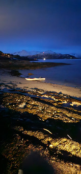 Day 18 + 261 was a good one.I had to postpone my start because my Garmin was out of power, but after a quick charge I was off again. The crossing around Kinn was a bit rough, with some swell and movement, but then it settled into calm winds and a long, gentle sea. I crossed Kvæfjorden and reached Borkenes a little after 21:00. I wanted to fill Ymir with food for Easter, so I did some evening shopping.